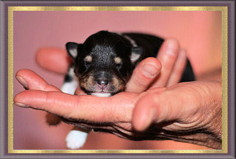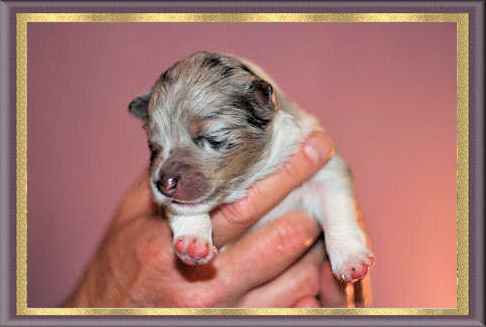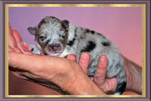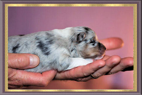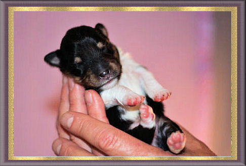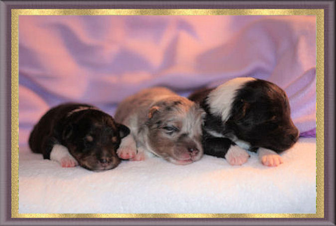 Pups at 1 week sired by BISS Am GCH/Can CH Homespun Casual Blues PT, NA, OAJ, NF, VCX, "Calvin" ex UCH Goodtime Tribecca Brightons' Bliss, "Becca"
